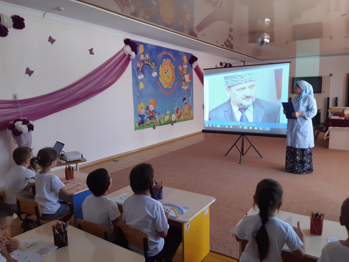 «Мир и счастье детям!» С 23.08.2019 г. в МБДОУ №8 «Солнышко» был проведен показ презентации посвященный памяти А.-Х. Кадырова с целью ознакомления дошкольников с героическими страницами жизни первого Президента Чеченской Республики, Героя России А-Х Кадырова, воспитания чувства патриотизма, любви к Родине, реализации задач духовно-нравственного воспитания. Дети с большим приняли участие.