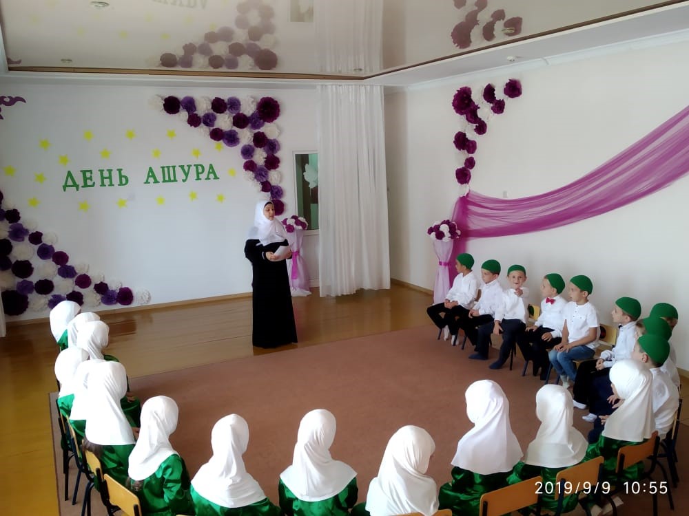 09.09.2019В МБДОУ №8 «Солнышко» 9.09.2019 года прошли ряд мероприятий посвященных ко Дню Ашура. Педагог дополнительного образования провела беседу с воспитанниками старшей и средней группы о значимости Дня Ашура. Дети внимательно слушали историю значимости этого дня. Так же с коллективом ДОУ была проведена беседа о видах поклонения которые нужно совершать в этот день. Желательно держать пост, давать милостыню.