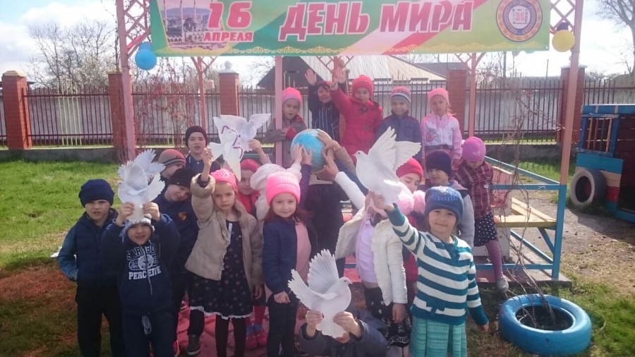 16.04.201721.04.2017г. в МБДОУ№8 «Солнышко» с. Новотерского воспитателями средней и старшей групп, были проведены беседы, просмотр видеороликов, к «Дню мира». Дети увлеченно слушали воспитателей, оживленно вступали в диалог, стараясь получить больше знаний в более доступной форме (вопросы-ответы). В первой половине дня, на прогулках с 18 по 21 апреля проводили конкурсы рисунков на асфальте «Мир на всей планете». 21 апреля в группах средних и старших дошкольников проведены ООД на тему: «Урок мира». Во второй половине дня провели небольшой концерт детей всех возрастных групп, показав лучшие свои номера.
