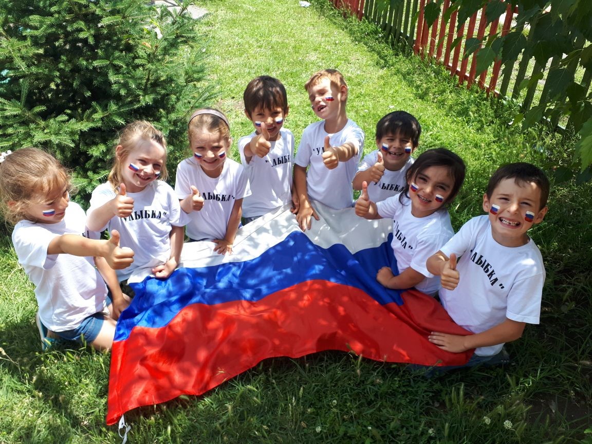 С 05.06. по 08.06. 2018 г МБДОУ №8 «Солнышко» согласно годовому плану и на основании плана мероприятий посвященных к празднованию Дню России были проведены ряд мероприятий в старших и средних группах было проведено праздничное спортивное мероприятие посвященное Дню России. Были проведены беседы во всех возрастных группах. Мероприятие было проведено на участке детского сада. Детям было рассказано, что День России – это праздник свободы, мира и добра. Этот праздник символизирует единство всего нашего многонационального народа, напоминает, что все несут ответственность за настоящее и будущее нашей Родины. Детьми были рассказаны стихи, спеты песни о России, были рассказаны пословицы о Родине. Завершился праздник рисованием на асфальте и веселыми, спортивными играми.